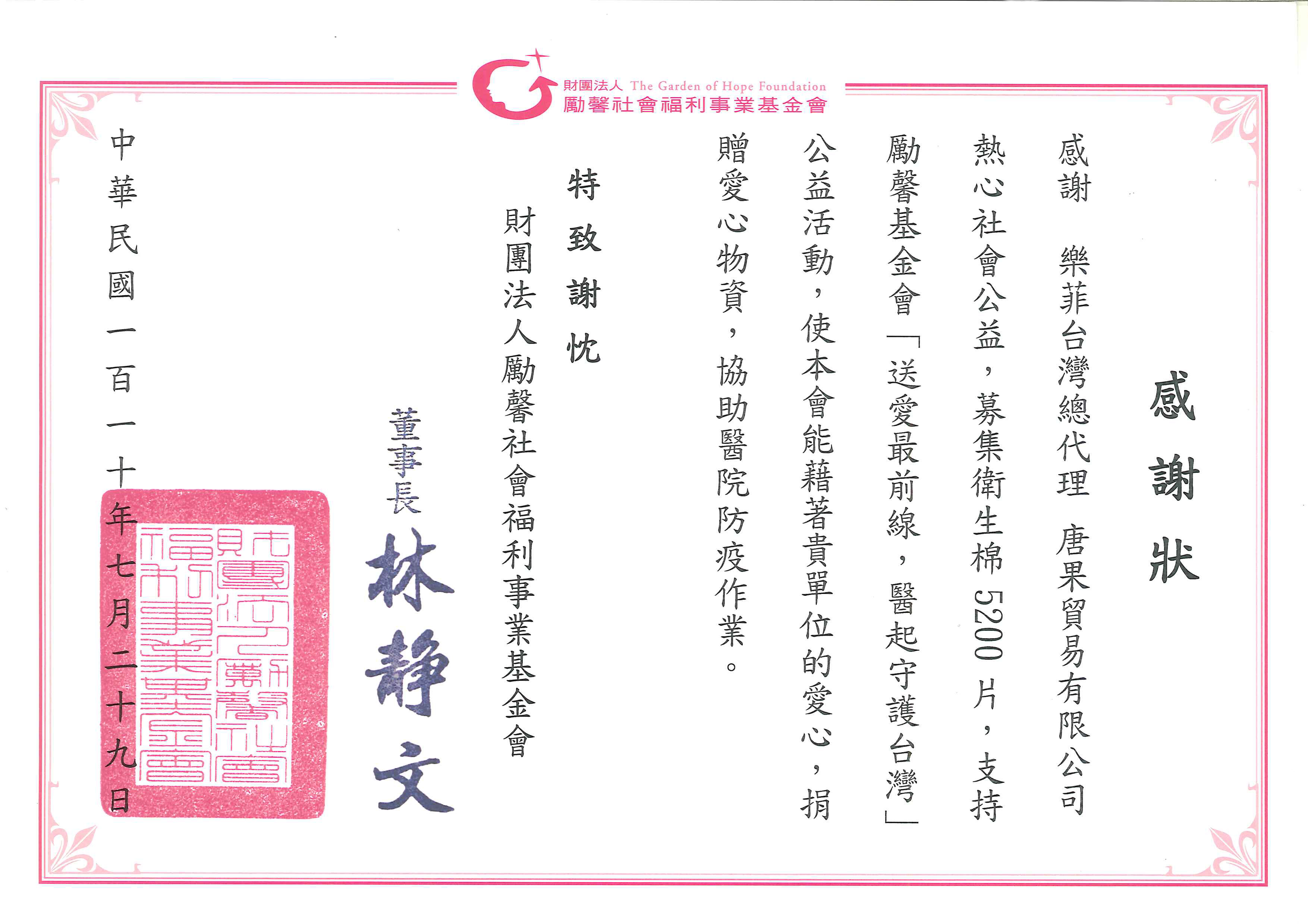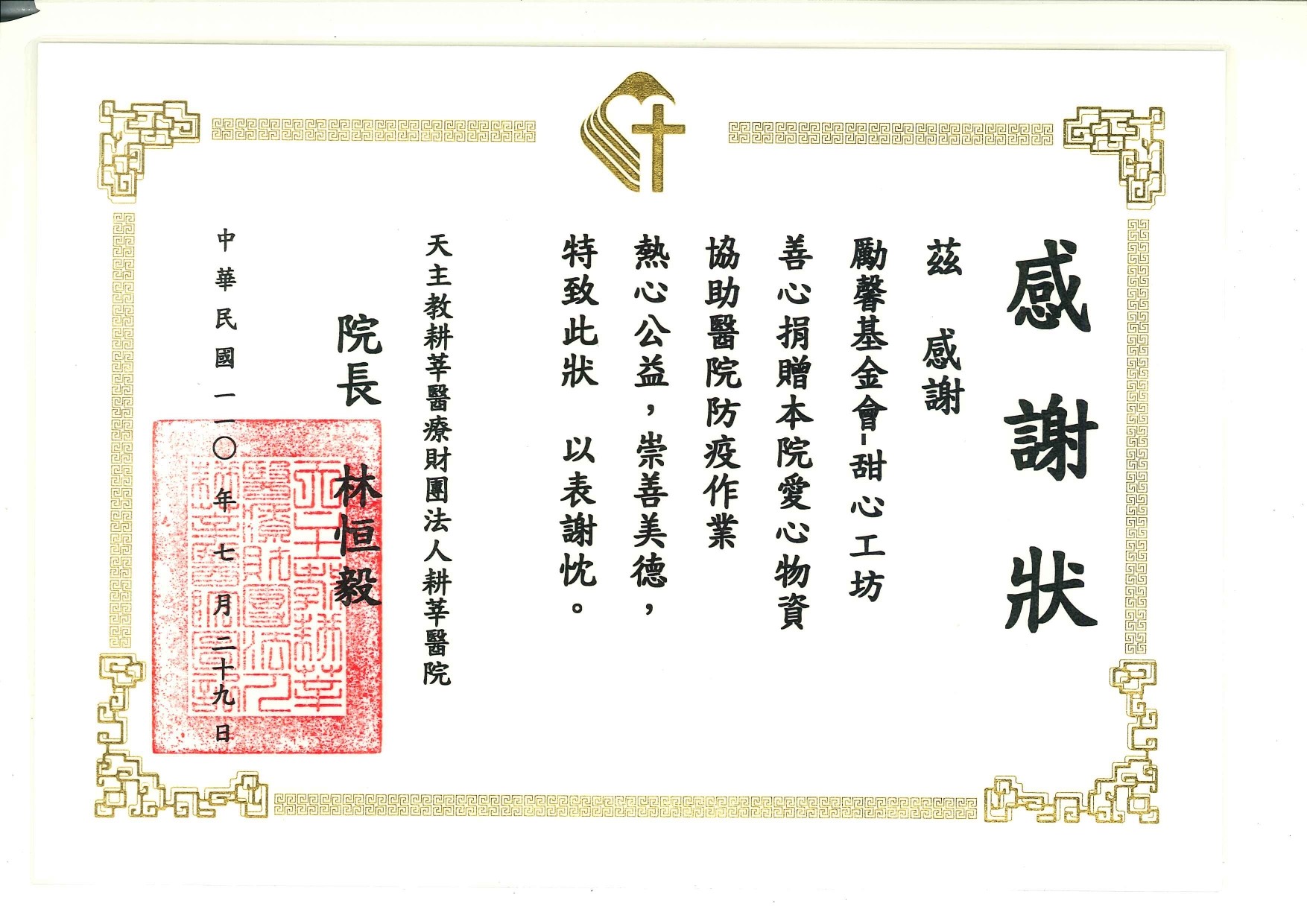 謝謝勵馨基金會甜心工坊發起了「送愛最前線,醫起守護台灣」的活動,很高興能參與其中,一同募集!